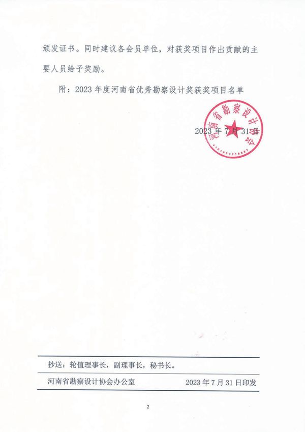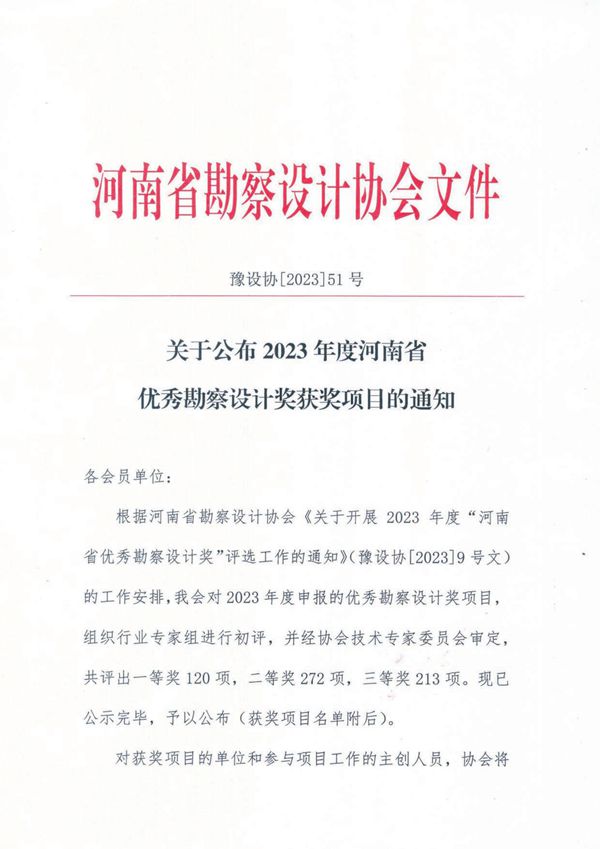喜報!我公司多個項目榮獲2023年度河南省優秀勘察設計獎