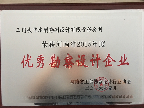 2016年1月30日我公司被授予河南省2015年度優(yōu)秀勘察設計企業(yè)。