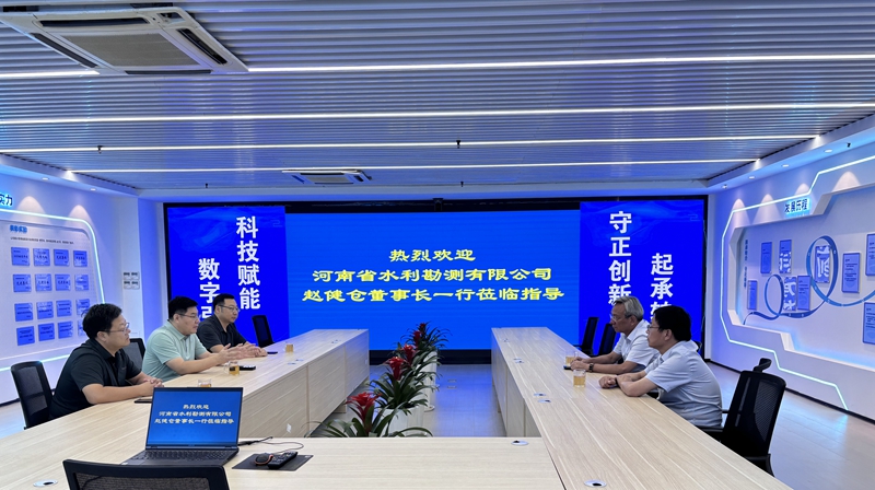 9月26日下午,河南省水利勘測有限公司趙健倉董事長、副總經理劉東雨一行到我公司考察交流,公司董事長張文敏、總經理趙宗銳、副總經理胡作龍陪同并進行座談。