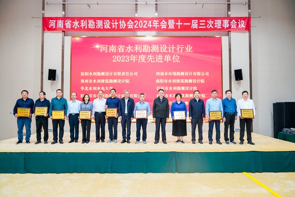 2024年10月12日,在濟(jì)源召開的河南省水利勘測設(shè)計協(xié)會2024年年會暨十一屆三次理事會議上,我公司被評為河南省水利勘測設(shè)計行業(yè)2023年度先進(jìn)單位,公司董事長張文敏榮獲協(xié)會2023年度“優(yōu)秀院長”稱號。